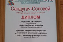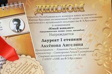 Искренне поздравляем с заслуженной наградой -Лаурета 1 степени студентку специальности "Музыкальное искусство эстрады. Эстрадное пение" Радмилу Басырову по итогам Международного многожанрового фестиваля- конкурса «Выше Облаков» (преподаватель Каримова Г.А.)