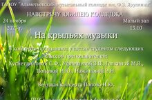 27 ноября в 13.00 час. в малом зале нашего колледжа состоится сольный концерт студентки 3 курса специальности "Музыкальное искусство эстрады.Эстрадное пение" Диляры Еремеевой (руководитель и преподаватель Сафина Айгуль Альфисовна)