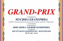 Студентка IV курса специальности "Инструментальное исполнительство.Фортепиано" Екатерина Мусина стала обладательницей "Гран-при" международного конкурса-фестиваля в рамках Проекта "Планета талантов".