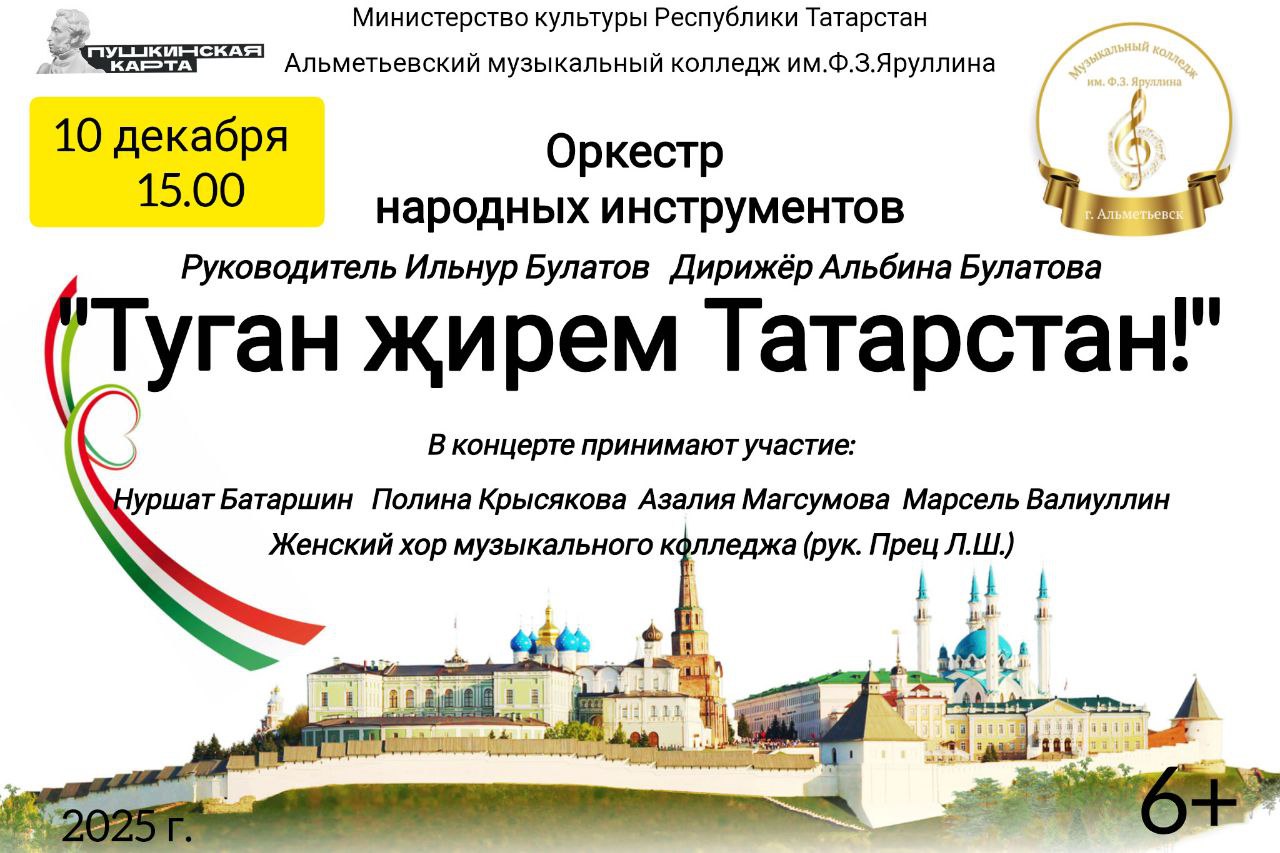 15 Ноября 2023 г. в 16:00 - Концерт оркестра "Tatarica" АФИША