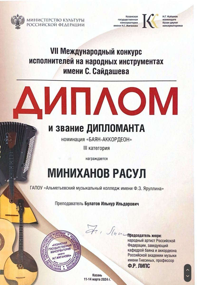Миниханов Расул - Дипломант конкурса.