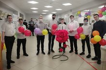 Наши парни с самого утра поздравляют милых дам с наступающим праздником!!