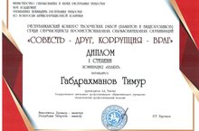 Дипломом I степени в номинации "Плакат" награжден наш студент группы 21 НЭМ Габдрахманов Тимур. Награду вручил министр юстиции РТ ...