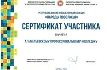 В ноябре 2016 года обучающиеся колледжа приняли участие в Республиканском фольклорном конкурсе «Народы Поволжья» в номинациях песенное творчество и «бабушкин сундук». Участники конкурса: обучающиеся групп 11 НПК – Ситдикова И, Калимуллова Р., Афансьев Р., Нугманова А., 21 НС: Галимов Д, Садыков Р, Хаертдинов А. , Афанасьев Р, - 21 НЭМ, Чурбанов Д, 11 СЭМ, Купцова Д - 21 НПК, Юсупова А. , 11 НТМ.