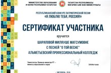 В октябре 2016 года прошел республиканский конкурс патриотической песни «Я люблю тебя, Россия!». Конкурс признан формировать у обучающихся морально - нравственные принципы, воспитывать чувство уважения к старшему поколению, истории Родины.