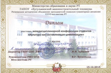 Гибадуллин Разиль (11СТО) награжден дипломом участника регионального конкурса авторской песни "Студенческие аккорды" среди ССУЗ юго-восточного региона. Руокводитель Липатова А.М.