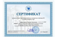 Студент группы 21 НМР Габдрахманов Р. стал призером интернет-тура Межрегиональных предметных олимпиад КФУ 2015/16 г. по литературе. Руководитель - Землянцева С.В.