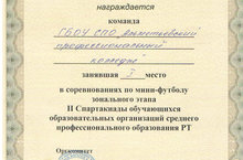 5 декабря прошло Первенство Альметьевского района по мини-футболу среди ССУЗов в зачет Спартакиады. Наши студенты заняли 3 место.