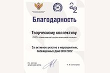 Благодарность творческому коллективу ГБПОУ "Альметьевский профессиональный колледж" 21.11.2022