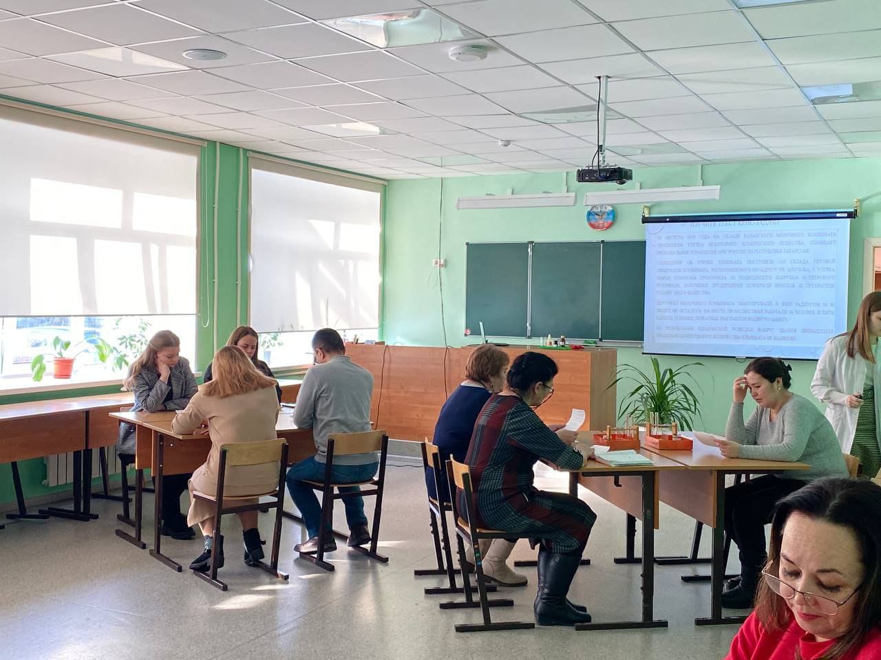 Участники семинара посетили открытый урок на тему: «Аммиак и соли аммония» с использованием case-технологии. В роли учеников на уроке выступили учителя, которые охотно отвечали на вопросы и проводили химические эксперты.