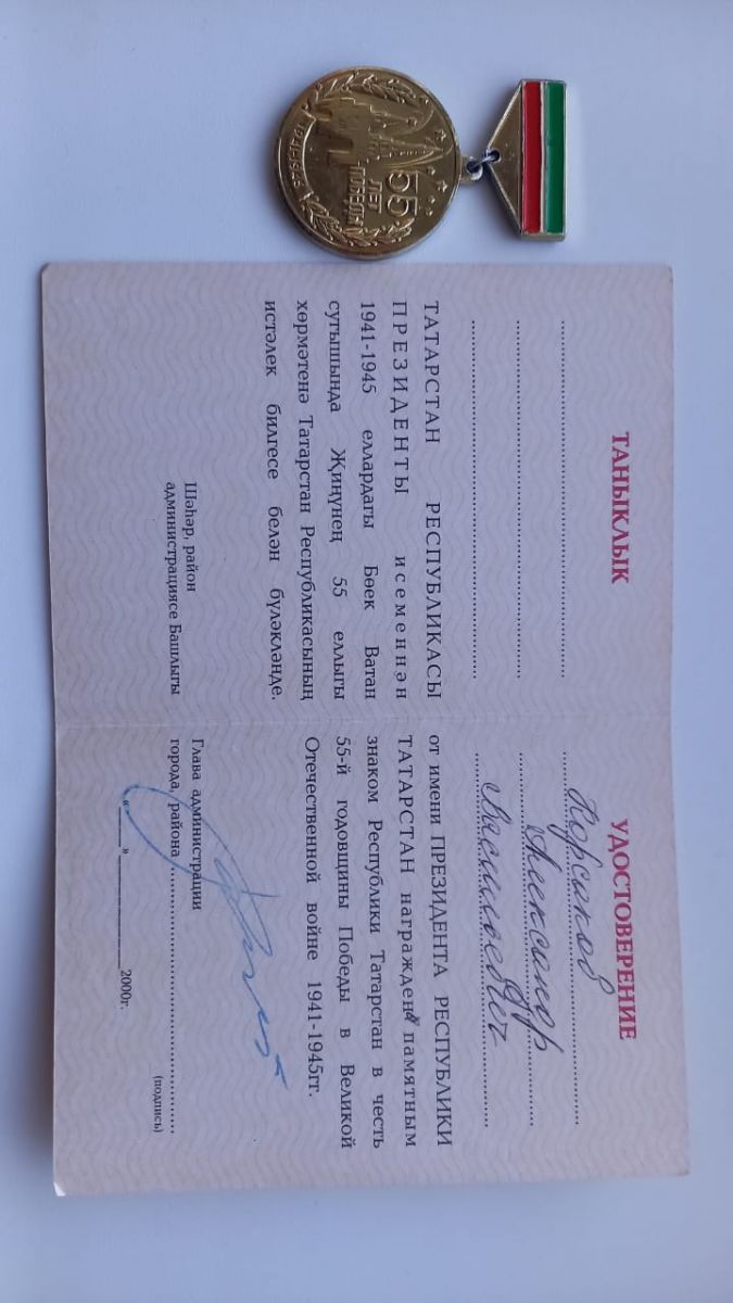 Памятный знак РТ 55 лет Победы в ВОВ