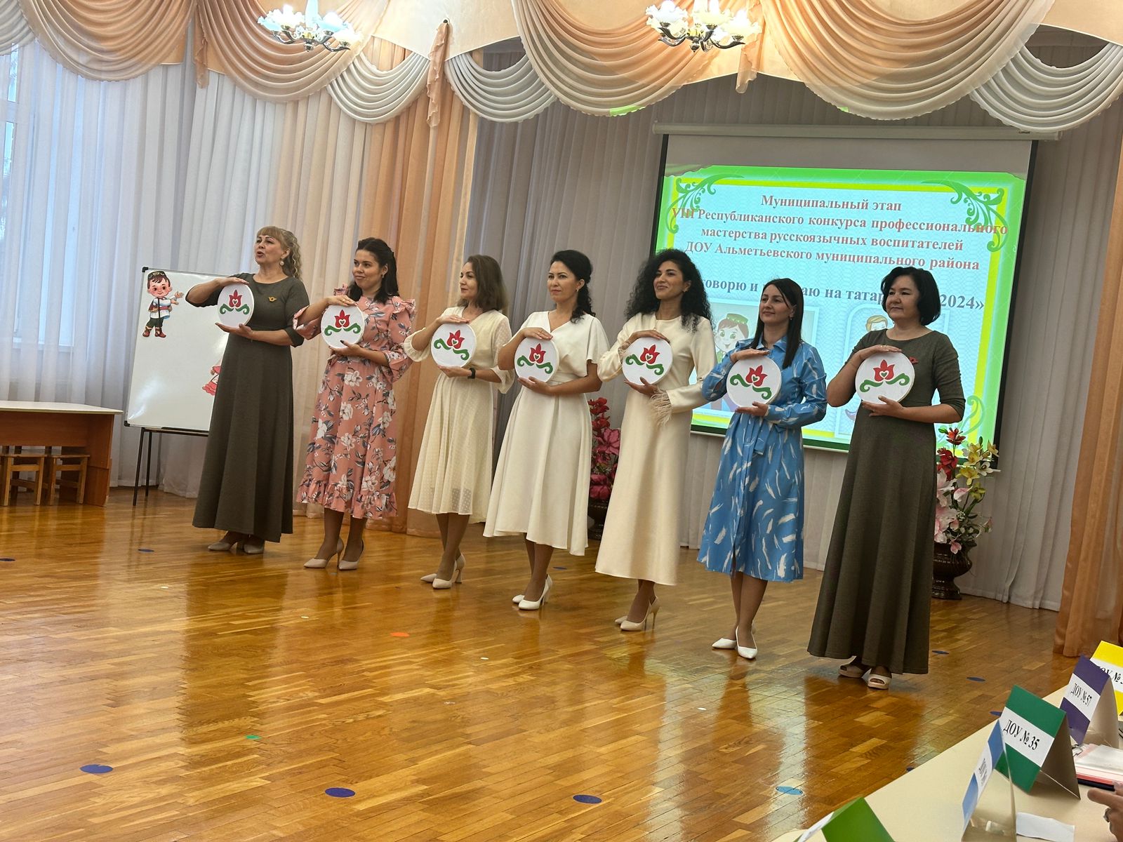«Әлмәт муниципаль районы Башкарма комитетының мәгариф идарәсе» 2024-2025 уку елына планы нигезендә, педагогларны һөнәри үстерү, рус телле тәрбиячеләрнең татар телен, мәдәниятен, гореф-гадәтләрен үзләштерү сәләтләрен күрсәтү өчен шартлар тудыру, педагогикларның, мәктәпкәчә белем бирү системасы хезмәткәрләренең иҗади инициативасын үстерү һәм аларның һөнәри тәҗрибәсен тарату максатларында, 15.11.2024 МБББУ "ЦРР-д/с 36 «Волшебный дворец» базасында Мәктәпкәчә белем бирү учреждениеләренең рус телле тәрбиячеләре өчен «Я говорю и работаю на татарском 2024» муниципаль һөнәри осталык конкурсы узды.