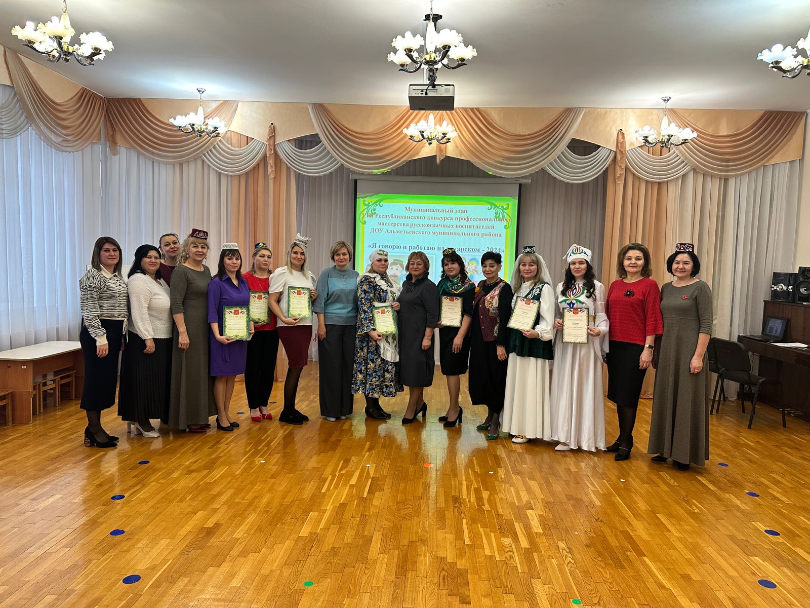 Опубликовано: 22.11.2024В соответствии с планом МКУ «Управление образования исполнительного комитета Альметевского муниципального района» на 2024-2025 учебный год, в целях профессионального развития педагогов, создания условий для демонстрации способностей к освоению татарского языка, культуры, традиций русскоязычными воспитателями, развития творческой инициативы педагогических, работников системы дошкольного образования и распространения их профессионального опыта, на базе МБДОУ «ЦРР-Д/с 36 «Волшебный дворец» 15.11.2024 г. прошел муниципальный конкурс профессионального мастерства «Я говорю и работаю на татарском 2024» для русскоязычных воспитателей дошкольных образовательных учреждений.