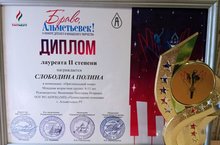 Поздравляем ученицу 4 класса Слободину Полину с высоким результатом в конкурсе "Браво, Альметьевск" в номинации "Оригинальный жанр"