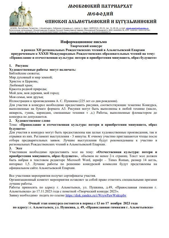 Частное общеобразовательное учреждение религиозной организации "Альметьевская Епархия Русской Православной Церкви (Московский Патриархат)" "Православная гимназия во имя святого равноапостольного князя Владимира города Альметьевска" - новости