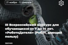 Приглашаем учащихся от 7 до 14 лет на III Всероссийский конкурс «РоботоДатели» (Робот, дающий пользу) 21.11.2022