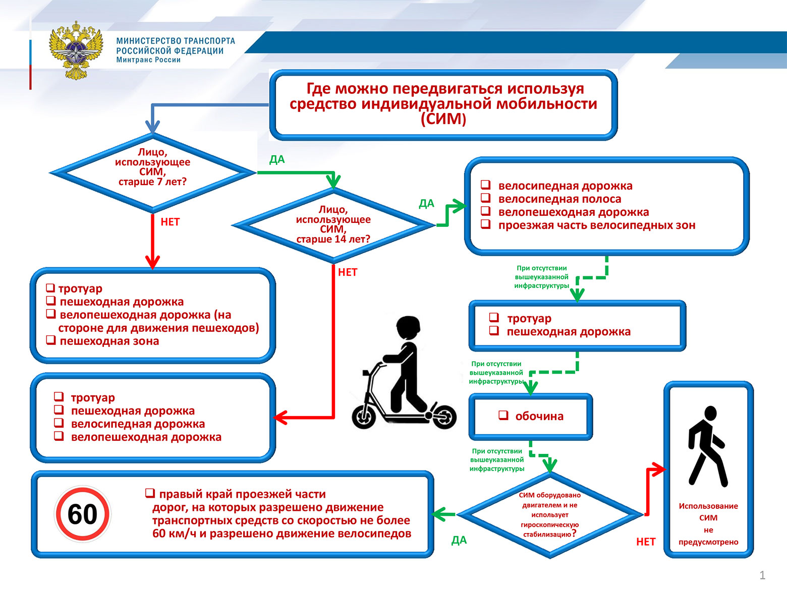 -по пешеходной зоне (для СИМ < 35 кг).