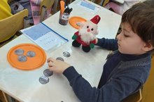 Учащиеся отдела "ШРД- Страна Любознайка" познакомились с деньгами достоинством 1,2,5 рублей, учились устанавливать соотношение между монетами и числами, закрепили состав числа 6 09.12.2019