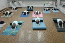 Учащиеся секции оздоровительной гимнастики выполняли растяжки и вспоминали асаны из йоги 12.03.2019