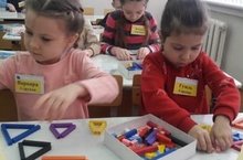 Дидактическая игра "У кого больше", учащиеся с помощью палочек "Кюизенера" закрепляют название геометрических фигур. 19.01.2019