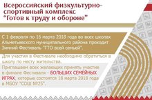 С 01 февраля по 16 марта 2018 года во всех школах АМР проходит зимний фестиваль "ГТО всей семьей".