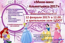 12 февраля в 12.00 в зрительном зале центра пройдет Кастинг конкурса "Мини-Мисс Альметьевск-2017".