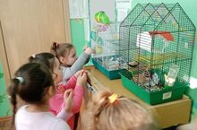 Зелёное царство комнатных растений вызывал интерес дошкольников. Юные любители природы с восторгом и большим интересом наблюдали за жителями живого уголка, и даже подружились с ними. Попугайчики, канарейка, хомячок, аквариумные рыбки, кролик - и это не весь список тех, кто стал другом "любознаек".