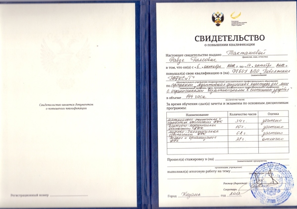 Такташева Р.Г. "Адаптивная физическая культура для лиц с ограниченными возможностями здоровья"