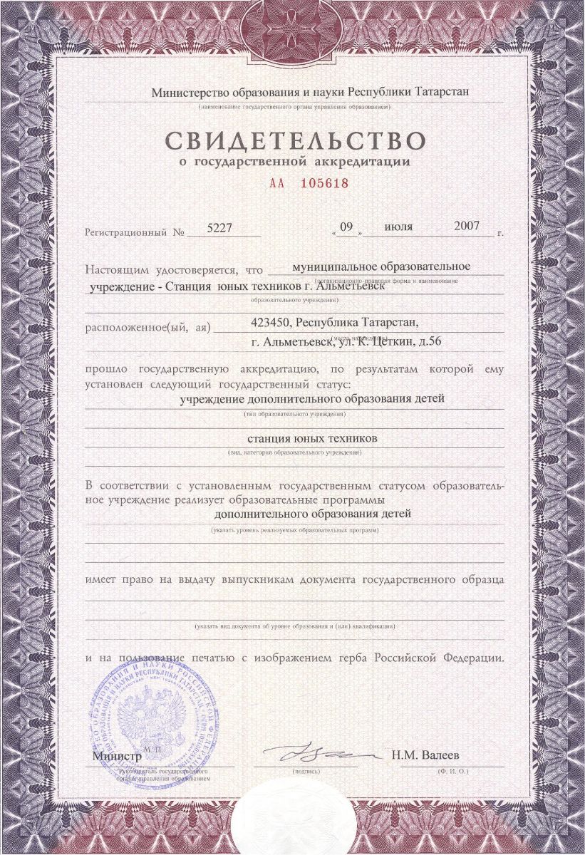 Муниципальное бюджетное образовательное учреждение дополнительного образования «Станция юных техников» г. Альметьевска Республики Татарстан /Татарстан Республикасы Әлмәт шәһәренең өстәмә белем бирүче муниципаль бюджет белем бирү учреждениесе «Яшь техниклар станциясе»/