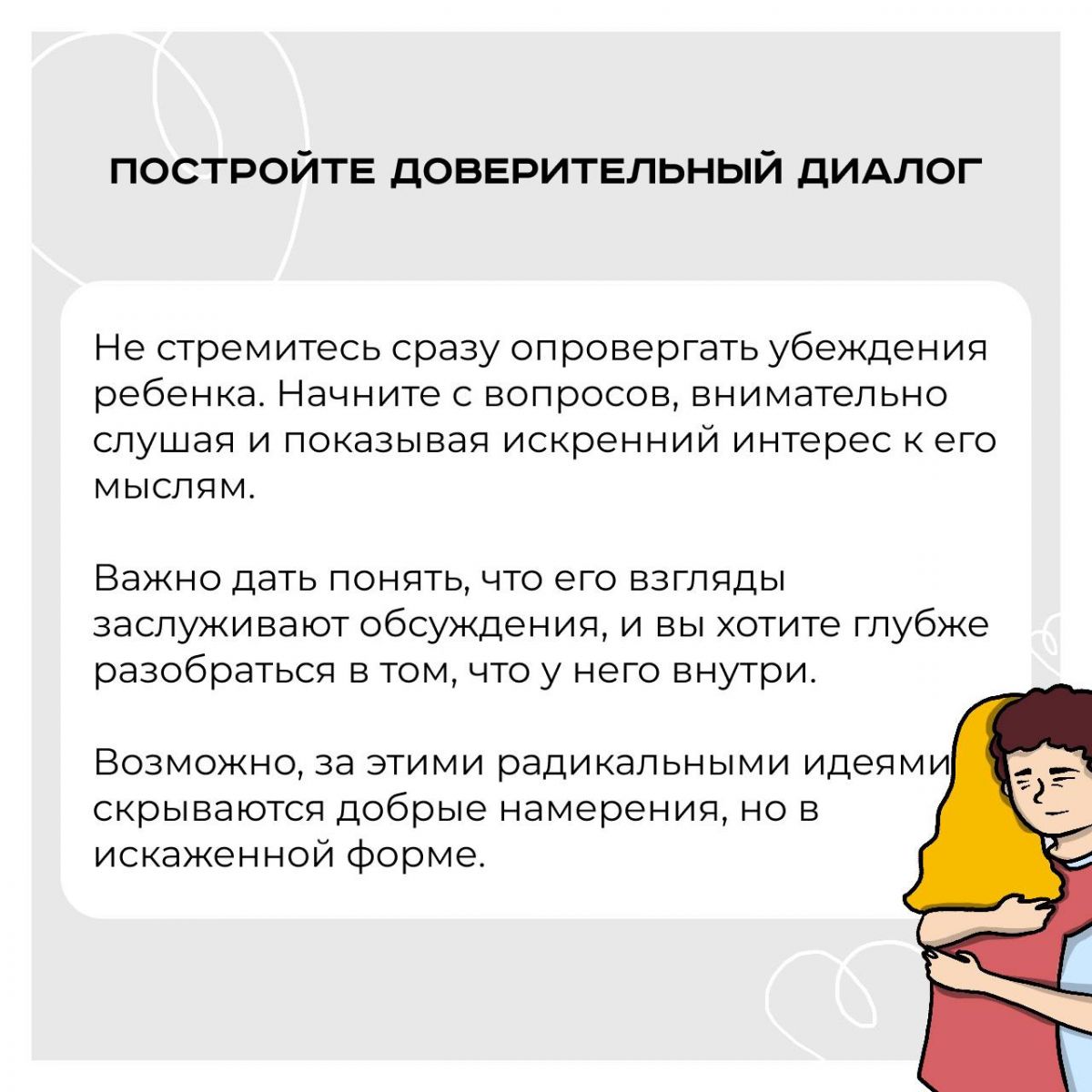 Если вы заметили, что ваш ребенок увлекся радикальными идеями, важно действовать осознанно и аккуратно.