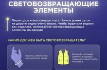 Убедитесь, что у ваших детей есть световозвращающие элементы – это просто, но крайне важно. Разговаривайте с ними о правилах дорожного движения и важности быть внимательными на дороге. Берегите себя и своих близких! -