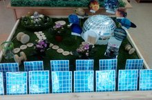 Рассуждали с детьми про «Детский сад будущего» и разглядели в глазах и сердцах ребятишек тот мир, в котором он будет построен. Сначала ребята зарисовали свои идеи, а затем воплотили их в реальность. Это оказался не простой детский сад! Это умный детский сад! По системе умный дом. У здания много уровней. Внутри здания есть бассейн, фитнес – зал, танцевальный зал, изостудия, лаборатории. На крыше здания находятся солнечные батареи, которые помогают нагревать нам воду и получать электричество – а это очень экономно! Ещё у нас есть авто полив для растений. В специальную бочку накапливается дождевая вода, от бочки идут шланги к растениям, таким образом, наши растения питаются водой. К тому же это очень выгодно и полезно, ведь дождевая вода гораздо мягче. Так же у нас есть собственный «Планетарий», до него не надо долго добираться – а это экономия времени! Вот такой у нас умный детский сад – детский сад будущего! -