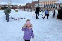 Убирают снег зимой -