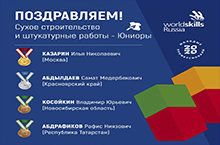 Поздравляем БРОНЗОВОГО ПОБЕДИТЕЛЯ финала VIII Национального чемпионата «Молодые профессионалы» (WorldSkills Russia) в компетенции «Сухое строительство и штукатурные работы» Юниоры студента группы СМ-191б Абдрафикова Рафиса Ниязовича (эксперт Михайлова Елена Михайловна)!