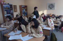 Закрепилась хорошая традиция перед началом проведения диагностики - общение школьников с амбассадором Федерального проекта «Профессионалитет» Хабибуллиным Айгизом.