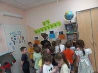 География как часть человеческой культуры является одним из средств, с помощью которых ребенок развивает свой интеллект и позже - собственную личность. В группах есть глобус с континентами без названий, окрашенными в разные цвета. Те же цвета встретятся снова в деревянной карте, континенты из которые можно вынимать и вставлять обратно, а также обводить карандашом, образуя большой пазл. Дети хорошо изучившие работу с глобусом переходят к работе с картами. Знакомству с мировыми континентами, их климатом, флорой и фауной посвящается много недель. В завершении недели каждая группа детского сада "Каракуз" представила материк, выбранный детьми на Фестивале континентов.