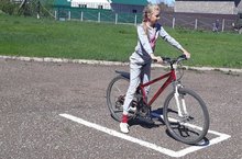 Члены отряда ЮИД проходят практические занятия по фигурному вождению велосипеда.
