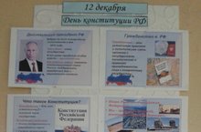 12 декабря отмечается День Конституции РФ. Оформлен стенд, проведен тематический классный час с показом видео-ролика.