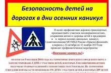 Безопасность детей на дорогах в осенние каникулы 30.10.2023