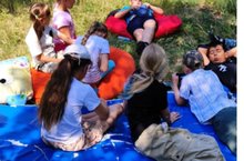 Сегодня наш день прошёл насыщенно и весело. После утренней зарядки и завтрака, ребята наводили порядок на территории памятника, убирались в школьной гардеробной, где без примерки костюмов не обошлось. А во время отдыха мы делали весёлые фотографии