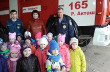 Самые маленькие воспитанники ДОУ посетили пожарную часть села.