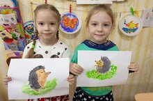 Ребята из старшей "Б" группы "Маленькая страна" сегодня не только узнали историю праздника, но и нарисовали забавных ёжиков. -