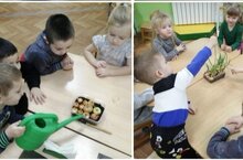 В декабре мы с ребятами решили, что вырастить зеленые перья лука будет нам по силам. Для этого мы взяли землю, совочек, лейку... Наложили землю в контейнер для рассады. С интересом, рассмотрели луковицы. Все ребята старательно с желанием посадили луковицы в землю, полили и с нетерпением ждали свой "урожай". И вот дождались... Вырастили вкусный и полезный лук.