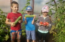Вот какие замечательные овощи выросли в нашей тепличке. Помидоры, огурцы и перчики - результат труда детей и взрослых!