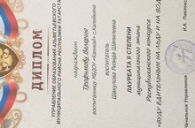 Воспитанница старшей группы Трофимова Валерия награжденна дипломом II Степени республиканского конкурса "Буду бдительным на льду и на воде"Молодец!