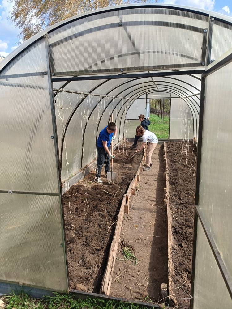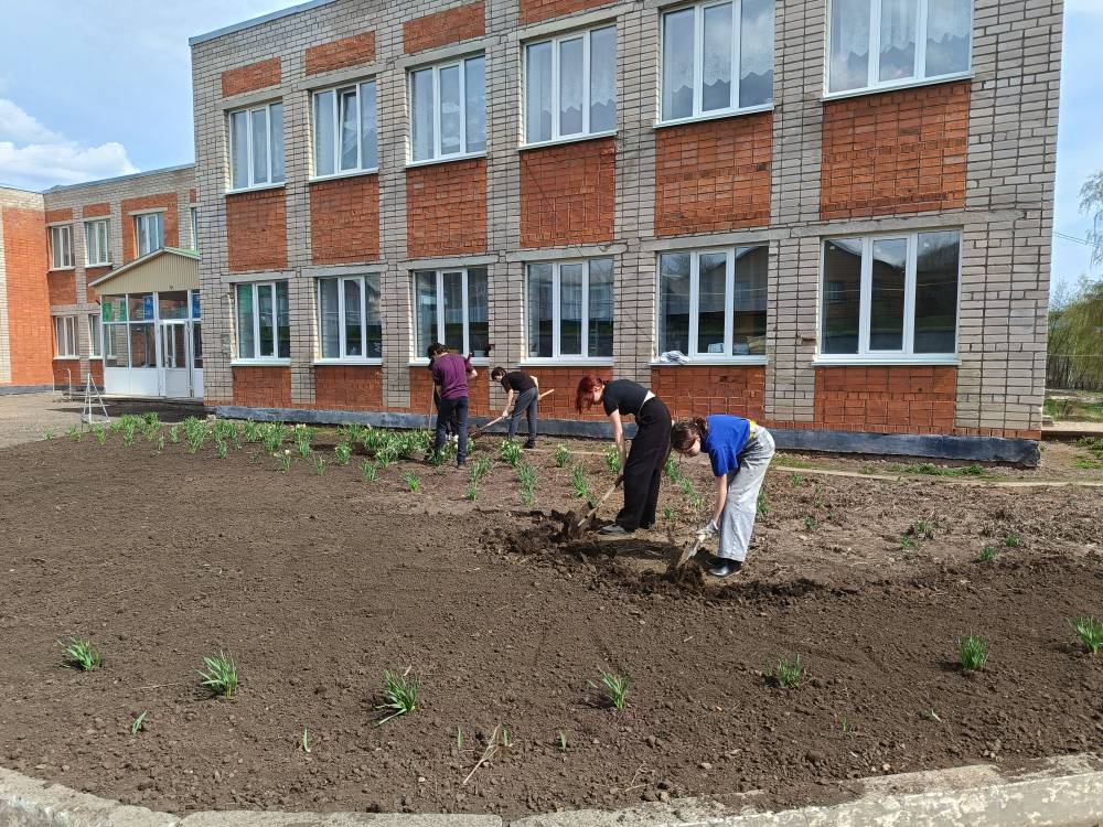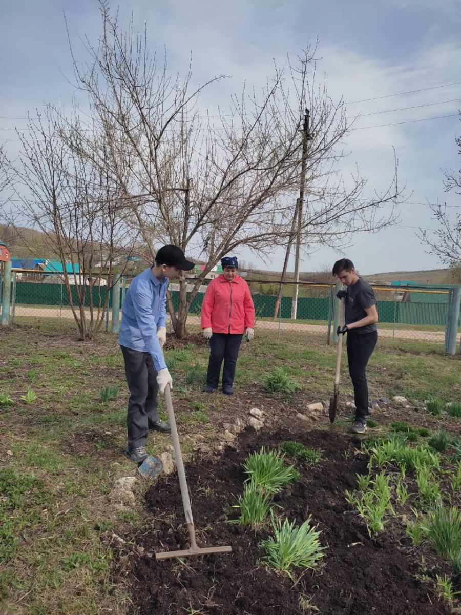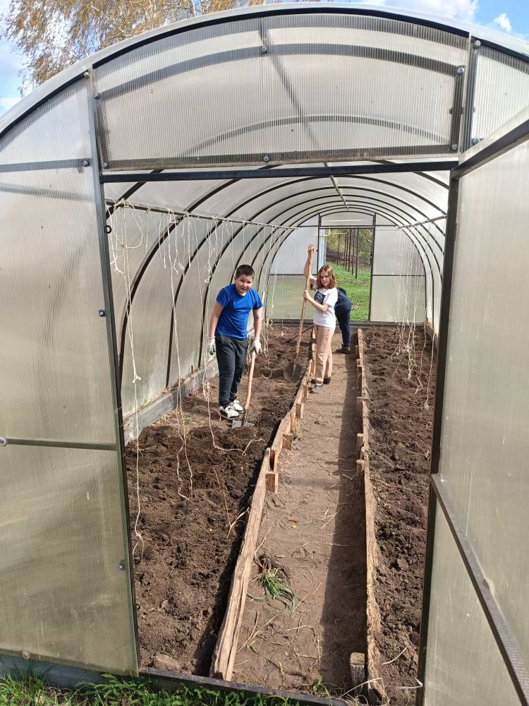 25 апреля учащиеся 6 и 8 классов с учителем технологии Ухандеевой А.М. привели в порядок клумбу и теплицу