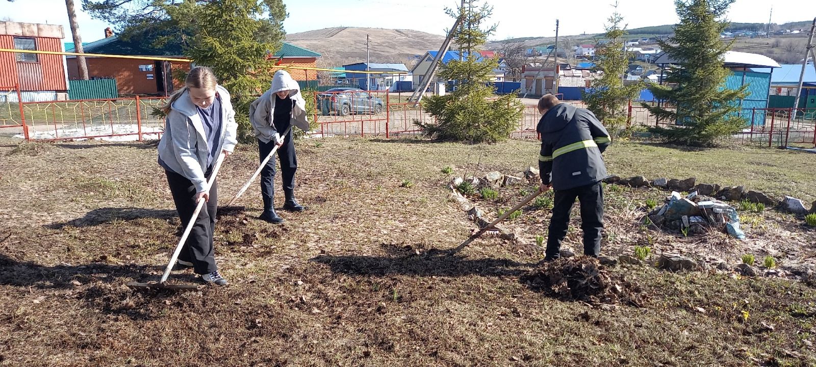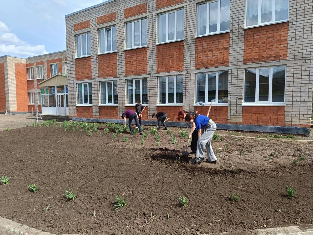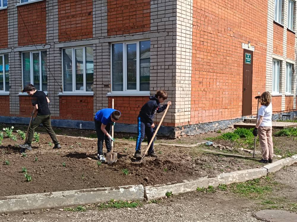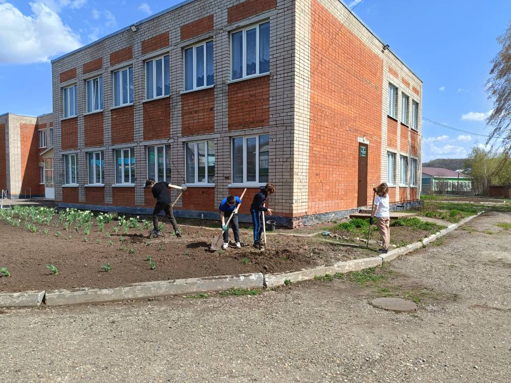 25 апреля учащиеся 6 и 8 классов с учителем технологии Ухандеевой А.М. привели в порядок клумбу и теплицу