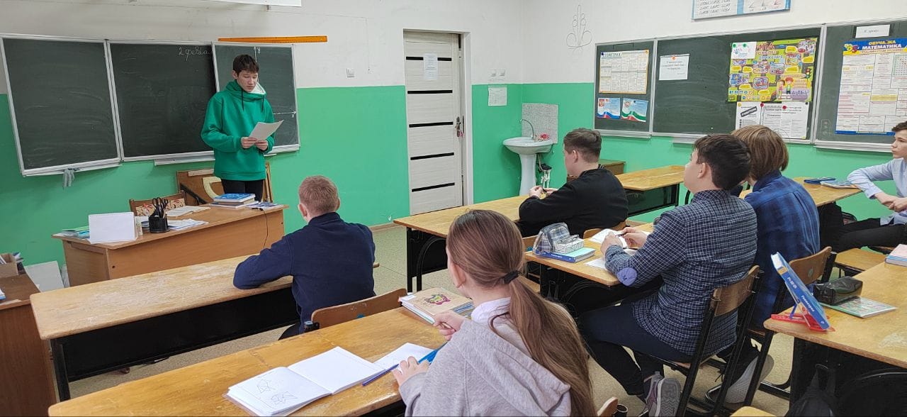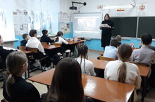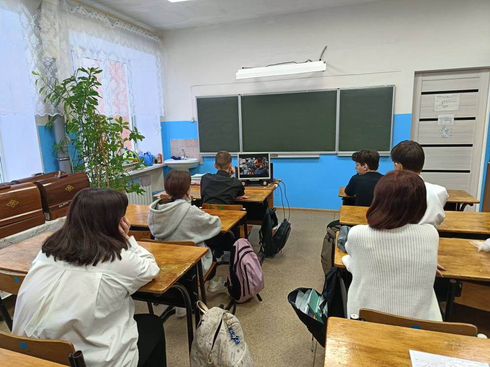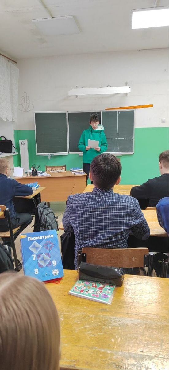 В рамках Движения первых активисты школы Пещеров А. и Александров Н. провели с учащимися 7 класса беседу об окончании Сталинградской битвы