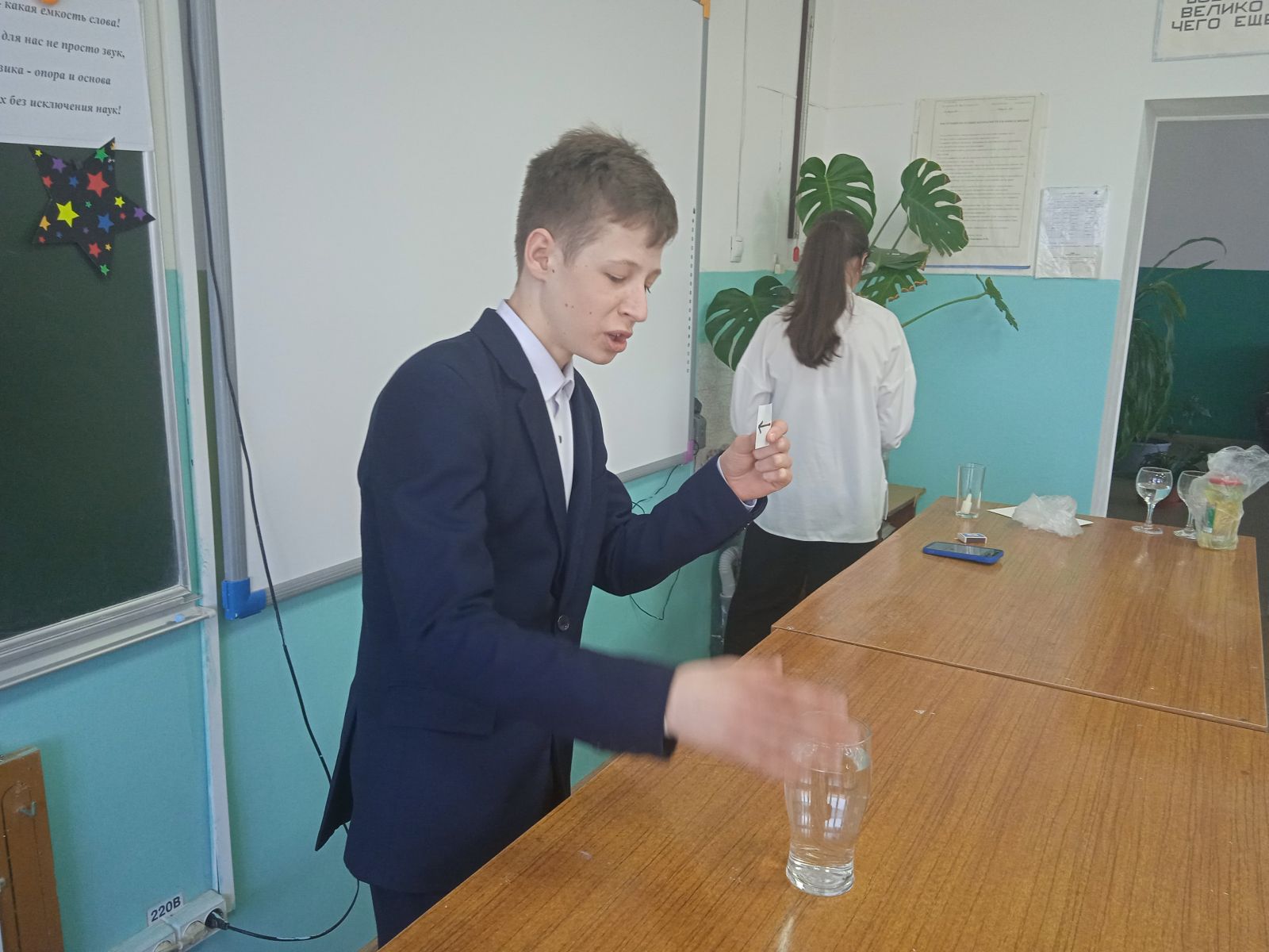 12 апреля 2023 г. в рамках метапредметной недели Шмо естественно-математического цикла учащиеся 9 класса показали опыты по физике учащимся 6 класса