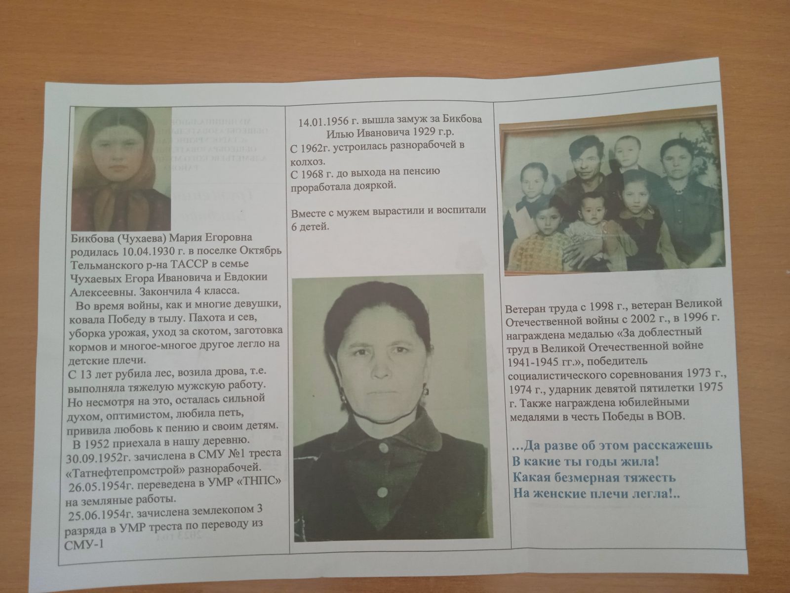 В рамках подготовки и проведения мероприятий к 78-й годовщине Победы в ВОВ с 1 по 13 марта в школе была организована выставка буклетов "У войны не женское лицо", рассказывающая о труженицах тыла села Старое Суркино